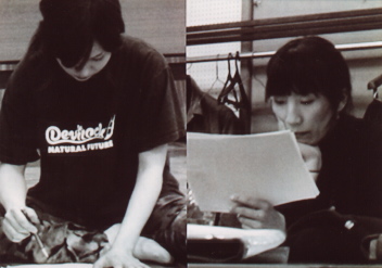 5/7(金)〜世田谷某所〜 【廻飛雄】 旗揚げ以来と言えば、というか特に旗を揚げた覚えもなく、第1回の公演に出して頂いてから早4年、みんな歳をとりました。思い起こせば4年前、世の中は2000年問題なんかでやきもきしてたのが、とても平和なことに思えます。で今回ですが、少人数と言うよりもキャストの平均年齢がゆうに30を越え、とても落ち着いた雰囲気で日々稽古は進行しております。さて本日は久々の全員集合。台本もグォッとそれなりにあがってきまして、まぁオムニバス云々ということについては改めて誰かからなんかあるかと思いますが、音も流したりで、そこそこ盛り上がったような感じです。まぁ稽古とはおうおうにしてそのようなものですが、個人的にはちょっと色々考えてたシーンはやらずにいまいち不燃焼でもあり、新しいシーンに登場したらしたで頭真っ白。あとひと月、人生はマラソン、稽古もペース配分ということにしてトボトボ帰るのでした。