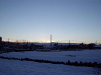 あけましておめでとうございます。グルメな写真じゃないんですけど新年なんでやはり初日の出をってことで撮ってきました。え〜ここはどこかというとですね。なんと実は年末から温泉に行ってまして、あたりは一面の雪景色、露天風呂に入りつつ・・・違うよ!うちの近所だここは、しかも駅の近く!ここから歩いて5分ぐらいで駅なんです・・・。道理で最近月や星がきれいなわけだ、納得!まぁかれこれ30年、変わらない景色でございます。で、雪をかぶっているのは茶畑、いちおうお茶どころ(←グルメつながり)です。