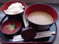 「冷や汁定食」です。いやぁ旨い。味噌ベースの冷たい汁を温かいご飯にかけて食べるという極めてシンプルな食いもんですが、キュウリといっぱいの胡麻、そして小魚も破片となっていっぱい入ってるダシの効いた汁はスッキリしていて、夏場の熱さで食欲が落ちてきた時なんかにも間違いなくサラサラいけます。っていうかキーンと冷やした焼酎なんかにもピッタリだし、飲み過ぎた翌朝にもピッタリ。いやぁ美味しい酒がある土地の美味しい食べ物だなぁと勝手に解釈しました。ちなみに最近焼酎はもっぱら黒霧島です。
