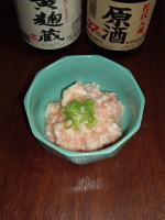さてここで焼酎の原酒についてですが、焼酎は基本的に原酒を水で割ってアルコール度数を25度位に調整して出荷しているそうで、その割る前の原酒ってことです。それにしても南星屋酒店にはいい焼酎がた〜〜くさんあります。この日も他に買いたい希少な焼酎があったんですが踏み止まりました。今度行く時まであるかなぁ、あったら嬉しいし、売切れれば次の入荷が待ち遠しいみたいな。もうバカです。あ、あと料理はたたき山芋の明太あえですが本で見たまんまを作っただけなので、あまり突っ込まないで〜。