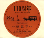 そんな伝統を守り続ける老舗の厳かな雰囲気で料理を待つこと15分。カニコロッケが運ばれてきました。俵型のコロッケが2つ。デミグラスソースの上に乗っています。ソースの上にコロッケです。これが老舗です。上からソースをかけたりしません。付け合わせは特にソースはかかっていないフィットチーネと何か味付けされたマッシュポテト。まことに上品な味でした。1つ600円のコロッケ味わい深かったです。写真撮ろうと思ったのですが、目の前にウエイターとウエイトレスが立っていて、恥ずかしくてやめました。なのでレジの脇にあったステッカーをもらってきました。創業110周年ですって。ホームページもあるみたいですね。興味ある人はのぞいてみて下さい。僕もこれ書き終わってからのぞくことにします。では。