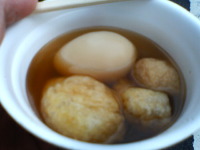 ただいま稽古中です。稽古場の最寄り駅の駅前におでんやさんがあるんです。近くの高校生がむらがってるんですが、気になって気になってついに買いました。どれでも1つ70円。たまごと巾着。それにおまけなのかな?小さい肉ダンゴを入れてくれました。持って帰る?食べながら行く?のおじさんのことばに僕は食べながら行きますと答え35才にしておでんを食べながら稽古場へ向かうのでした。おでんはあったかいしおじさんの笑顔もあったかいし、電車で疲れた身体も一気に回復しいざ稽古!