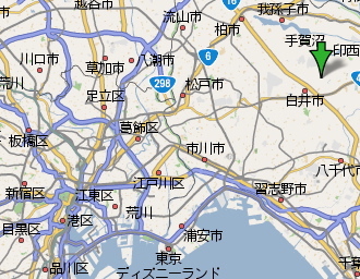 お〜っその前に、この神々廻の読みですが、わかります?かみがみーめぐる?まわる??しんじん、まわり?めぐり?めぐって、もうっ脱帽です!な、な、なんとぉ「ししば」です。これは読めない・・・。し・し・ば。パソコンでご覧のあなた、変換してみてください。ししば。ね、神々廻。変換できました?各地に読めない地名はたくさんありますが、これは結構な上位じゃないかなぁ。京都の地名なんかもわくわくしますけどね。あれをすらすら読めたら気持ちいいんだろうなぁ。京都はさておき、さぁ、目指せ神々廻!とその前に、神々廻ってどこじゃい!神々廻は千葉県白井市神々廻ですって、だからどこじゃいそりゃあ。というわけでおおざっぱな地図で確認するとー